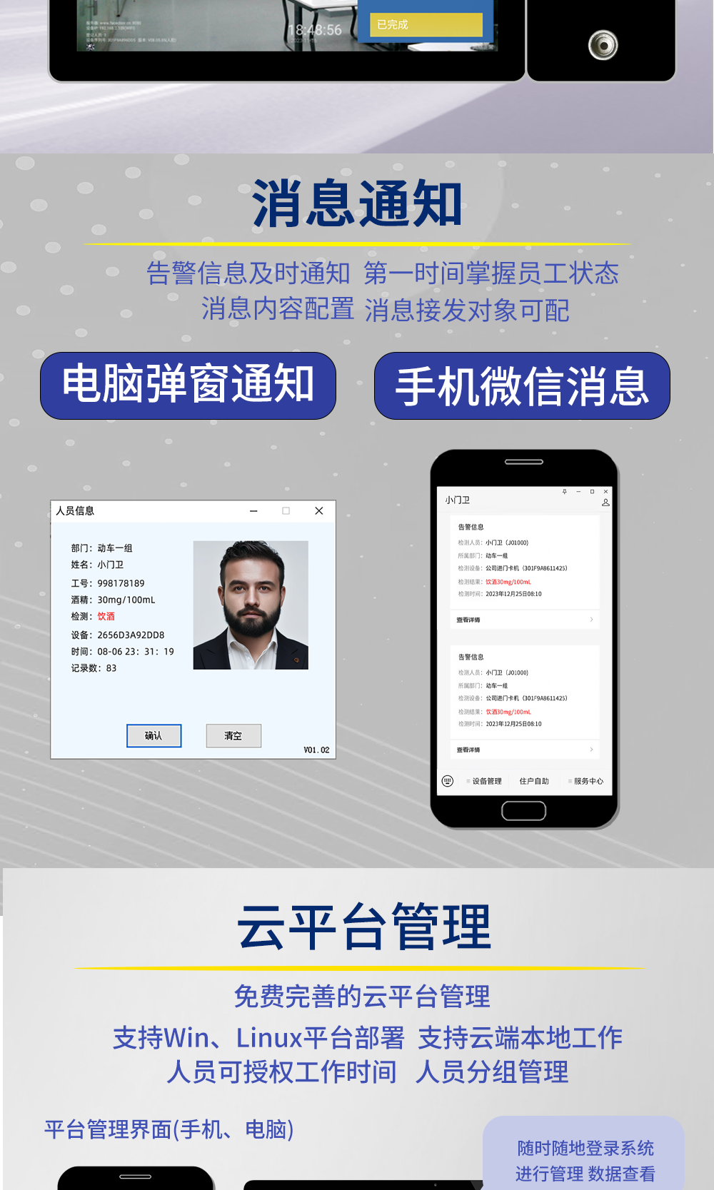 岗前酒检、体温筛查、考勤打卡、门禁管理